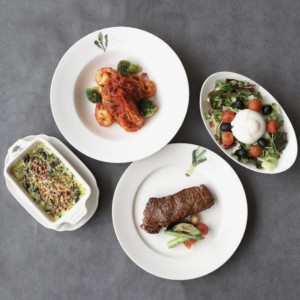 구성 : 부라타 샐러드 + 감베리 토마토 파스타+ 채끝 스테이크+ 크림 시금치
